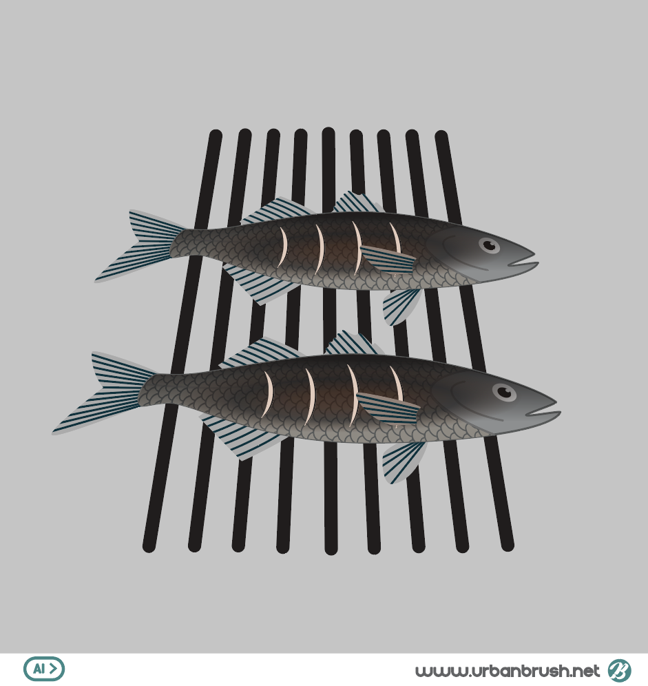 Hi. Urban Brush’s Master Creator Tommy. The image below is a sample of ai file with grilled fish illustrations. It is an illustration image expressing grilled fish grilled on the grill. It is an illustration image that depicts a scene where two fish are burnt to the fire. Fish, grilled fish, barbecue and other categories are suitable for use in illustration images. Download grilled fish illustration vector file and use it for fish related design.