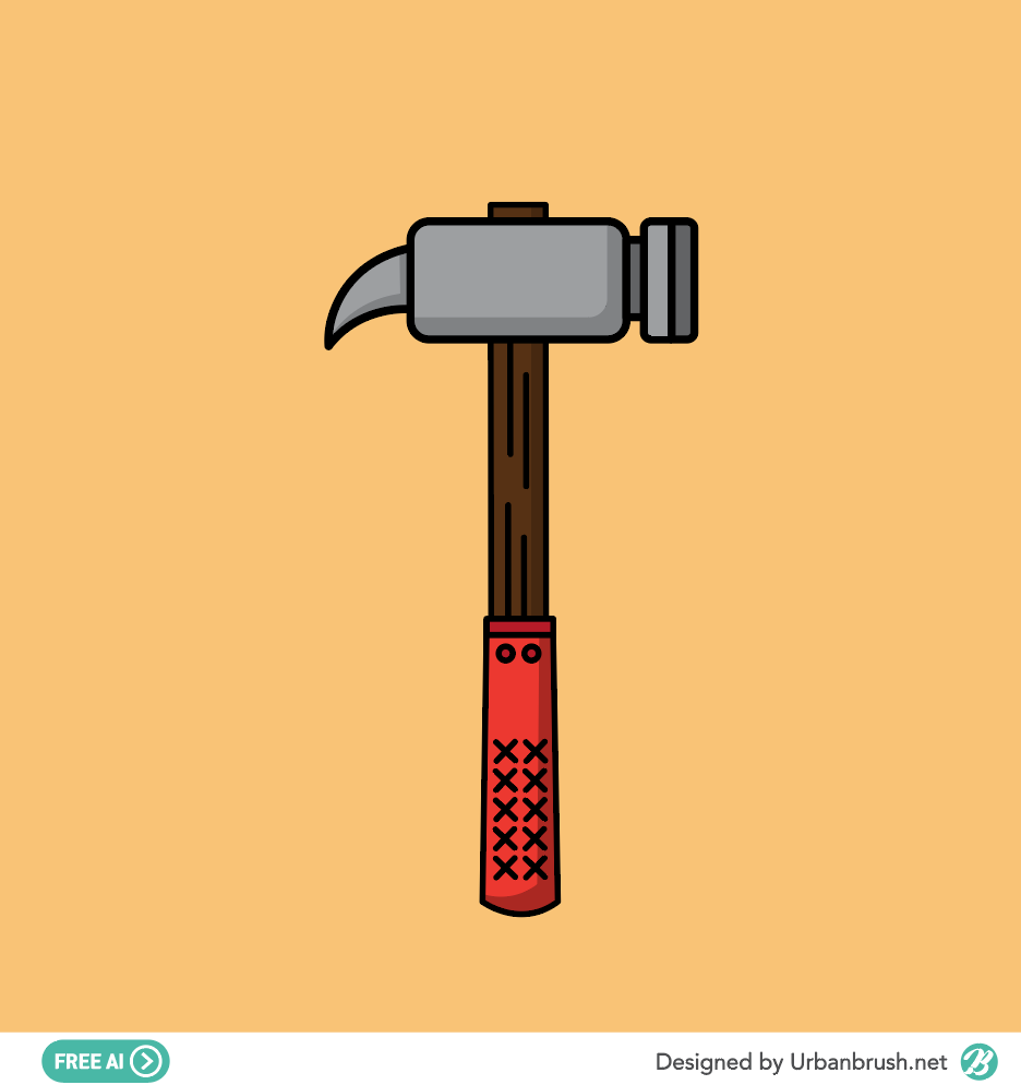 Hi. Urban Brush’s Master Creator Tommy. The image below is a sample hammer illustration ai file. This is an illustration image depicting a hammer used by a carpenter or worker in a woodworking job. The hammer head is made of steel, the sack is wood, and the handle is rubber. This image is suitable for use in categories related to hammer, tool, tool, work, handle, and so on. Download the hammer illustration vector file and apply it to the design related to the tool.