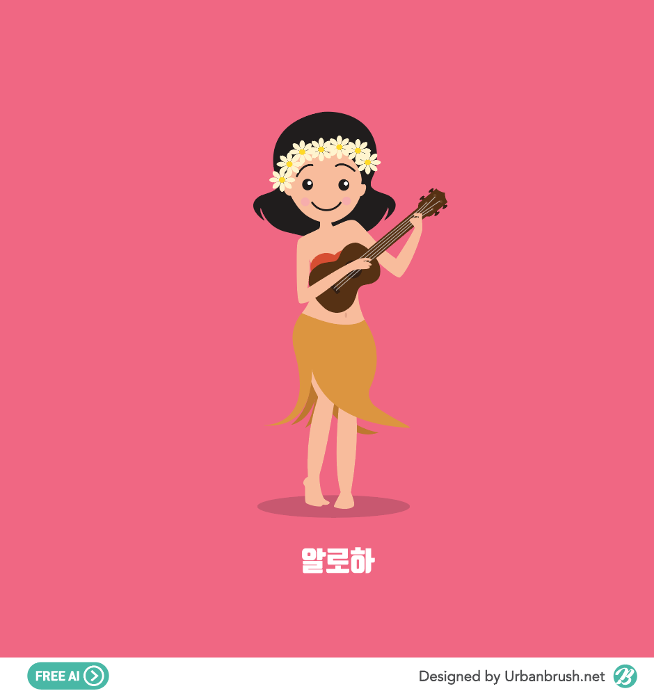 Hi. Urban Brush’s Master Creator Tommy. The image below is a sample Hawaiian girl illustration ai file. This is an illustration image depicting a girl holding a ukulele, a musical instrument that is often used to dance hula in Hawaii. It is an illustration image depicting a girl wearing a Hawaiian traditional costume with a flower headband on her head and playing Ukulele. Hawaii, ukulele, aloha, hula, etc., and is suitable for use in category images. Download Hawaiian girl illustration vector file and use it for design related to Hawaii.