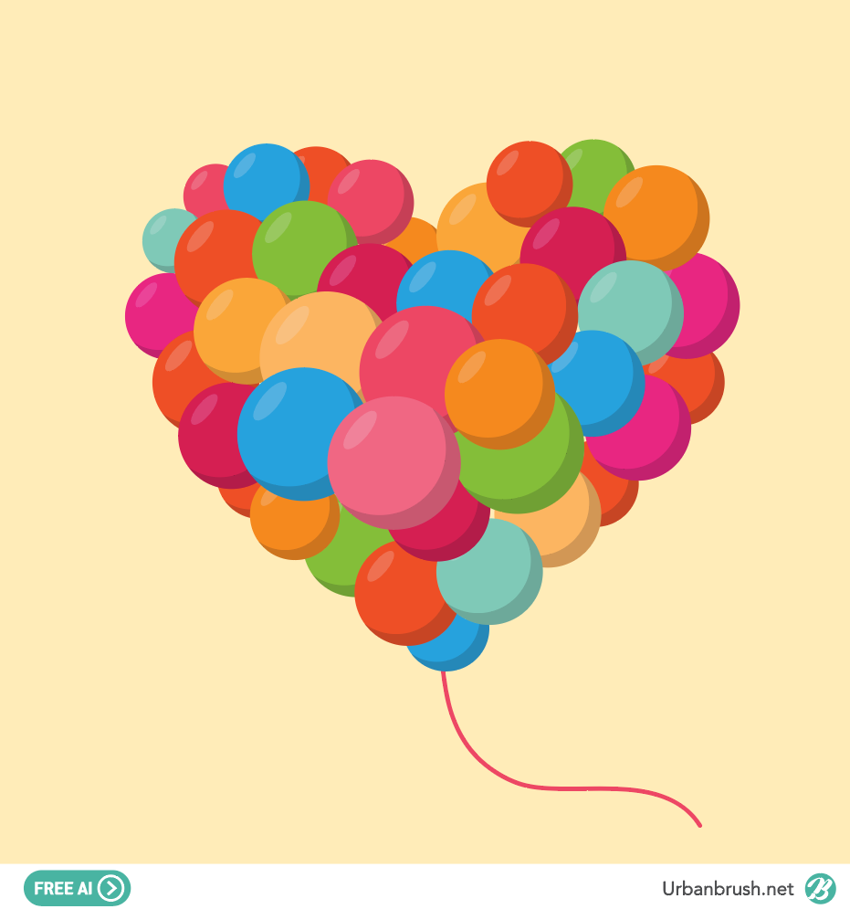 Hi. Urban Brush’s Master Creator Tommy. The image below is a ai file sample of a heart balloon illustration. It is an illustration image depicting a balloon of various colors clustered together. The overall shape of the balloon is in the shape of a heart, which means love, and the balloons are depicted in various colors and sizes. Balloons, hearts, love, sky, travel and other categories are relevant to illustrative images. Download the heart balloon illustration vector file and use it for your travel related design.