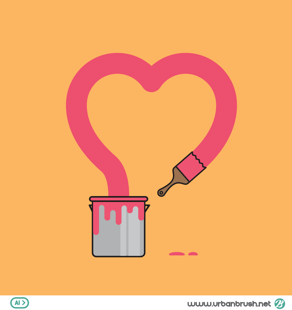 Hi. Urban Brush’s Master Creator Tommy. The image below is a sample of heart paint illustrations ai file. It is an illustration image depicting a scene in which the paint through brush is shaped like a heart. It is an illustration image that depicts the shape of the heart that symbolizes love along with the paint of the paint bucket with a brush. Love images, hearts, paint buckets, brushes, and related to the image category is useful to illustrate the image. Download Heart Paint Illustrations vector file and use it on love related topics.
