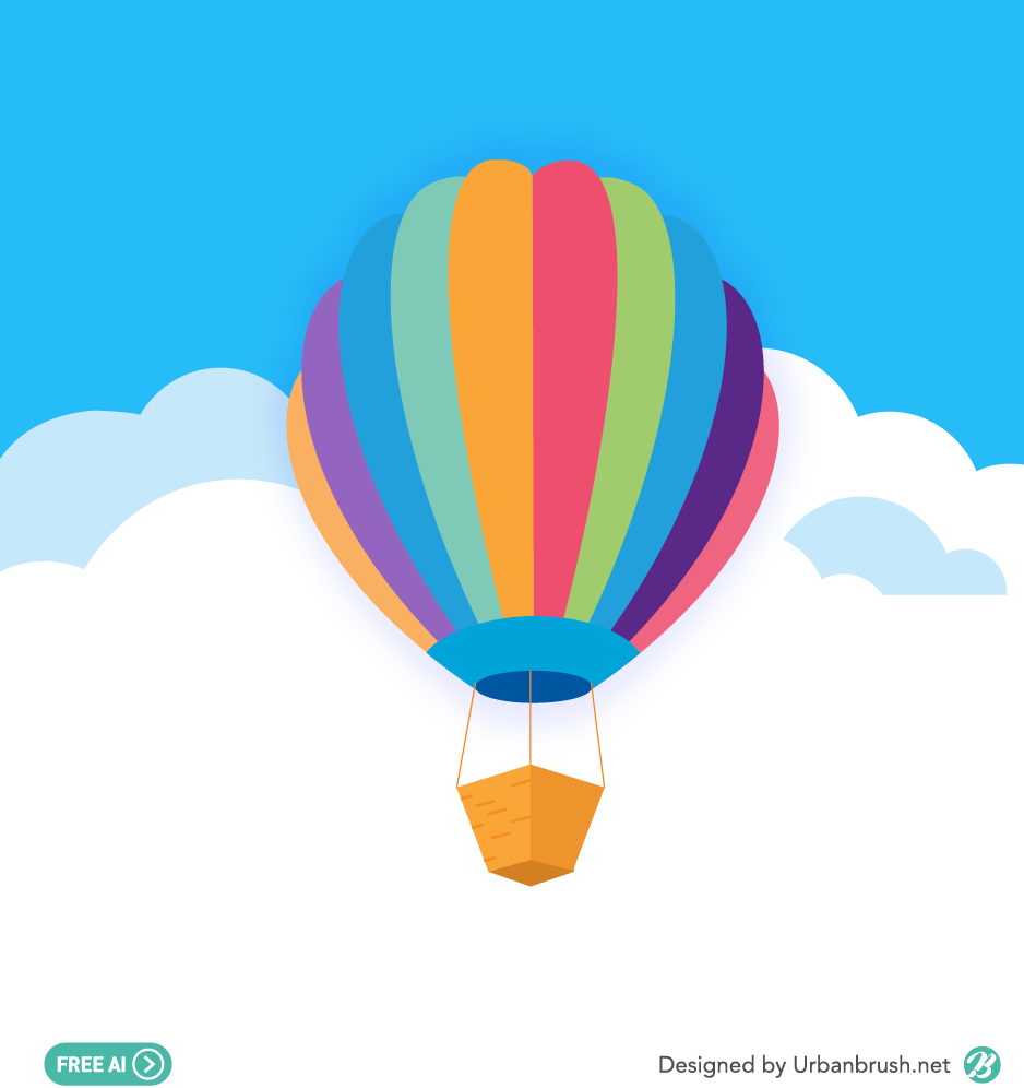 Hi. Urban Brush’s Master Creator Tommy. The image below is a sample file of a hot air balloon illustration. Illustrated image depicting a hot air balloon in a rainbow color flying through the sky. The blue sky and the cumulonimbus clouds spread, and it gave the feeling like a fairy tale using pastel feeling colors. It is an illustrative image that can be used in categories related to travel, tours, dreams, and fantasies. Download the hot air balloon illustration file and apply it to your travel related design.