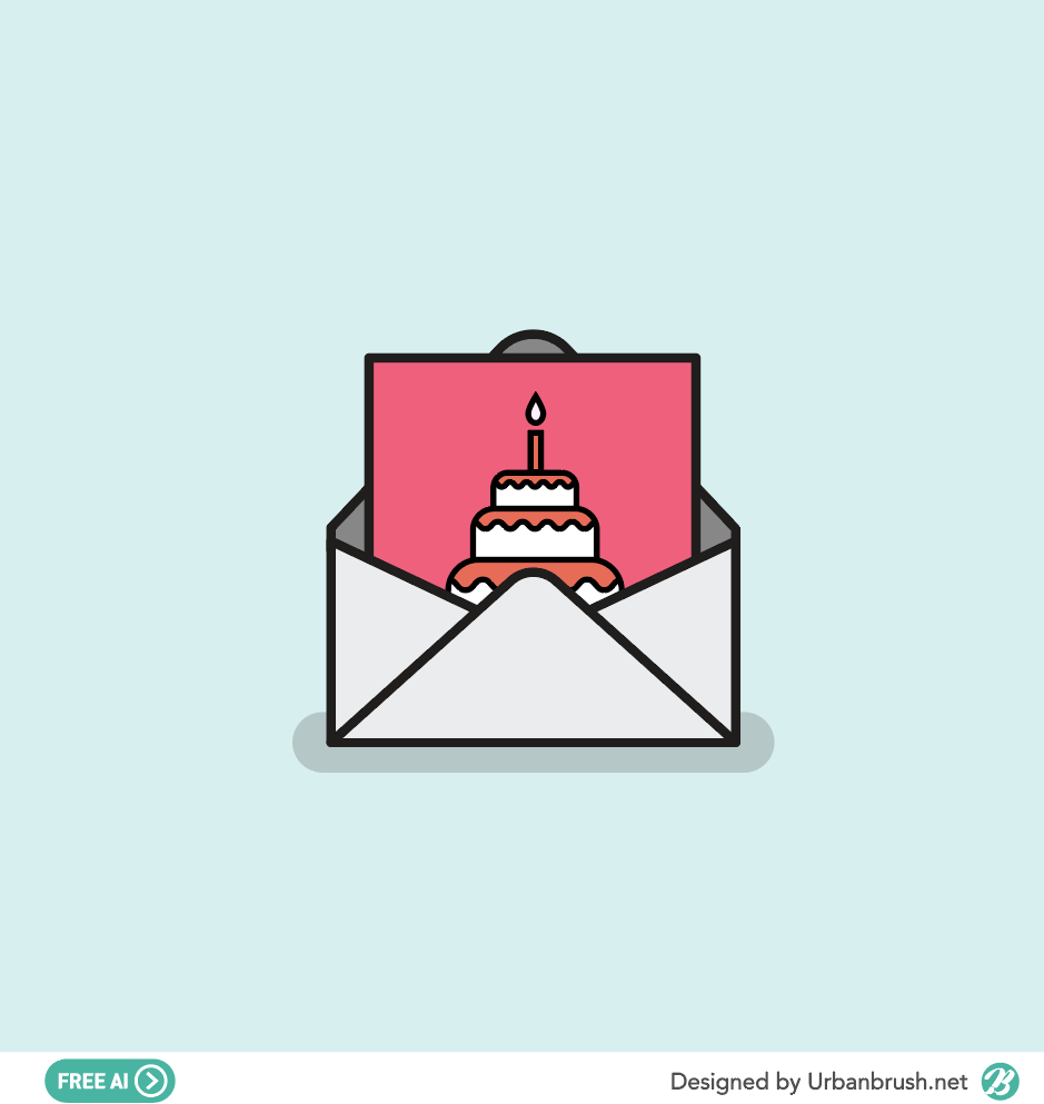 Hi. Urban Brush’s Master Creator Tommy. The image below is a sample of an invitation illustration ai file. It is an illustration image depicting a birthday cake on a stationery in a letter envelope. It is usually an illustration image suitable for use in birthday invitations or themes related to wedding invitations. This image is suitable for use in categories related to stationery, letters, postal mail, invitations, and wedding invitations. Download invitation illustration vector file and use it for design related to card letter.