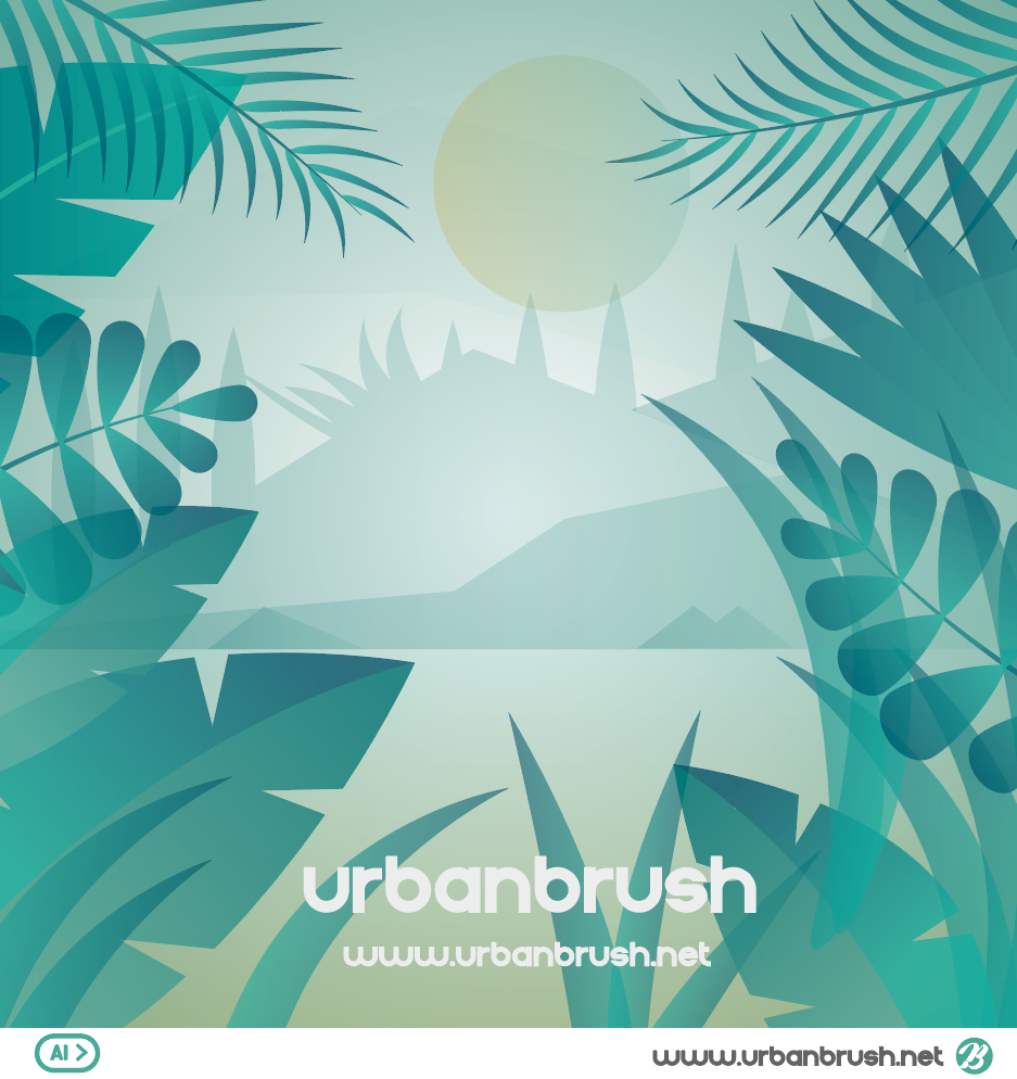 Hi. Urban Brush’s Master Creator Tommy. Below is a sample jungle illustration ai file. It is an illustration image depicting a jungle with a unique color. It depicts the grass around palm trees and leaves, and expresses the image of the jungle in a unique expression by faintly expressing mountains and lush forests. It is an illustrative image suitable for categories related to jungle, palm trees, tropical regions, wild, Amazon, and grass. Download the jungle illustration vector file and use it for design related to Amazon.