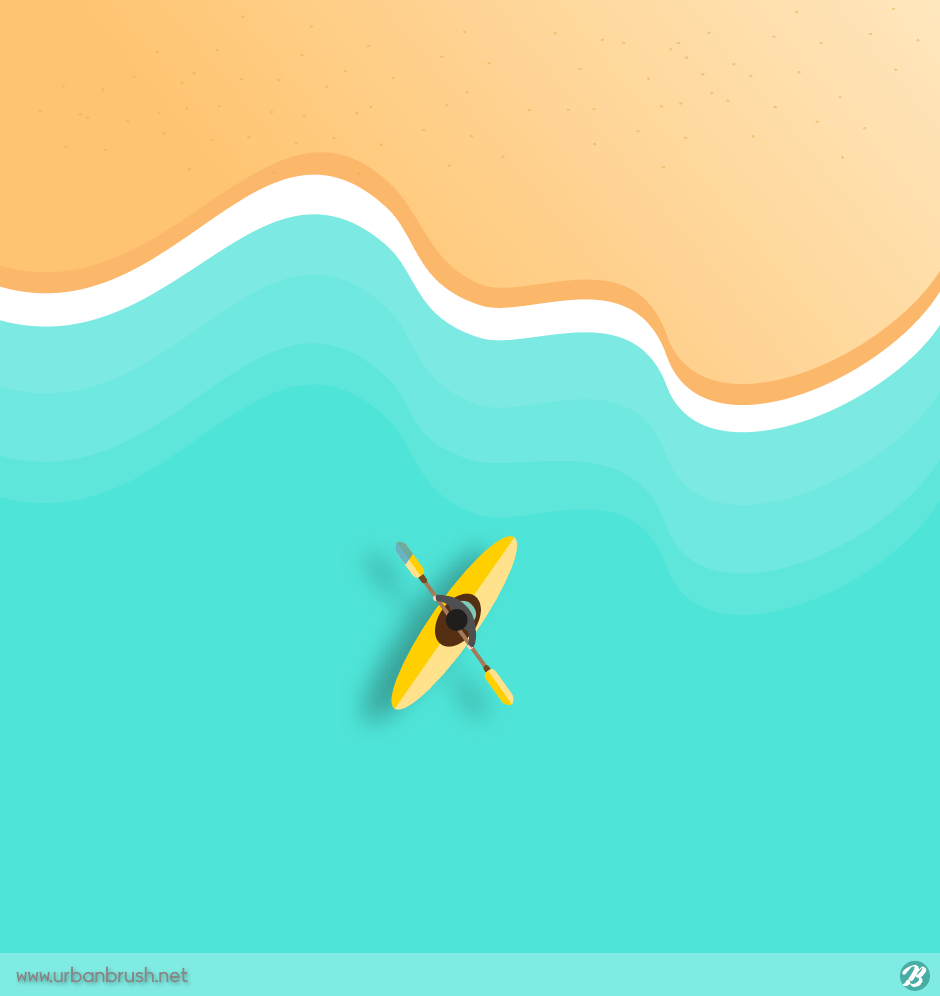 Hi. Urban Brush’s Master Creator Tommy. The image below is a sample of kayap illustrations ai file. It is an illustration image that expresses a kayak departing from the sea beach. It is an illustration image expressing the appearance of sailing on a kayak boat over the ocean depicted by the bend of the beach and the clean sea light. Kayaking, canoeing, boating, beach, sea and other categories are suitable for use in illustrations. Download the kayak illustration vector file and apply it to images related to leisure sports.