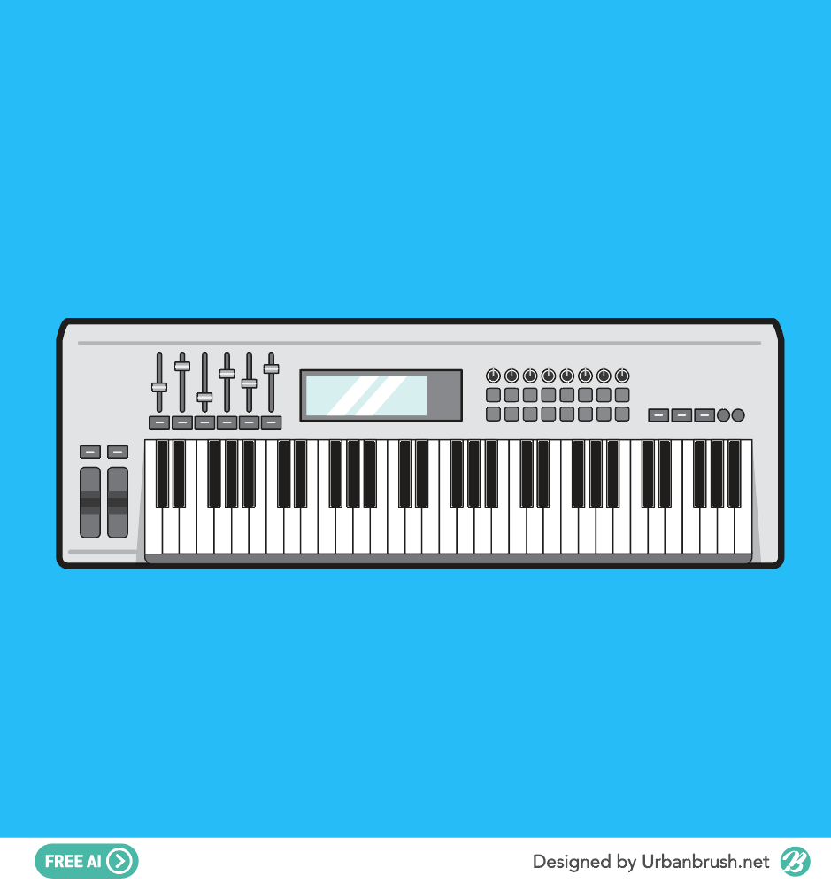 Hi. Urban Brush’s Master Creator Tommy. The image below is a sample of the key figure ai file. This is an illustration image depicting a synthesizer or MIDI keyboard keyboard, typically used for music work. The piano keys are similar, with various dials, buttons and LCD windows. Music, composition, arranging, MIDI, EDM and is suitable for use in categories such as illustrations. Download the keyboard illustration vector file and use it for music related design.