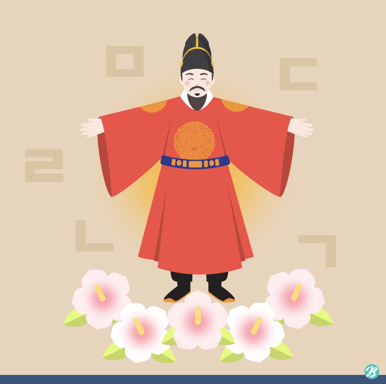 Hi, This is Tommy, Master Creator of Urban Brush. The image below is a sample of King Sejong’s smile illustration. It is an illustration image expressing King Sejong the Great smiling with his arms wide open. It is an illustration image depicting a man wearing a robe with his arms wide open. This is an illustrative image suitable for use in categories related to King Sejong the Great, Hangeul Day, Mugunghwa, Hangeul, Smile, Smile, Public Holidays, Yongpo, and October. Download the King Sejong smile illustration vector file and use it for design related to Hangeul Day. Included fonts are examples and are not included in the file. Please inquire with the font company for use.