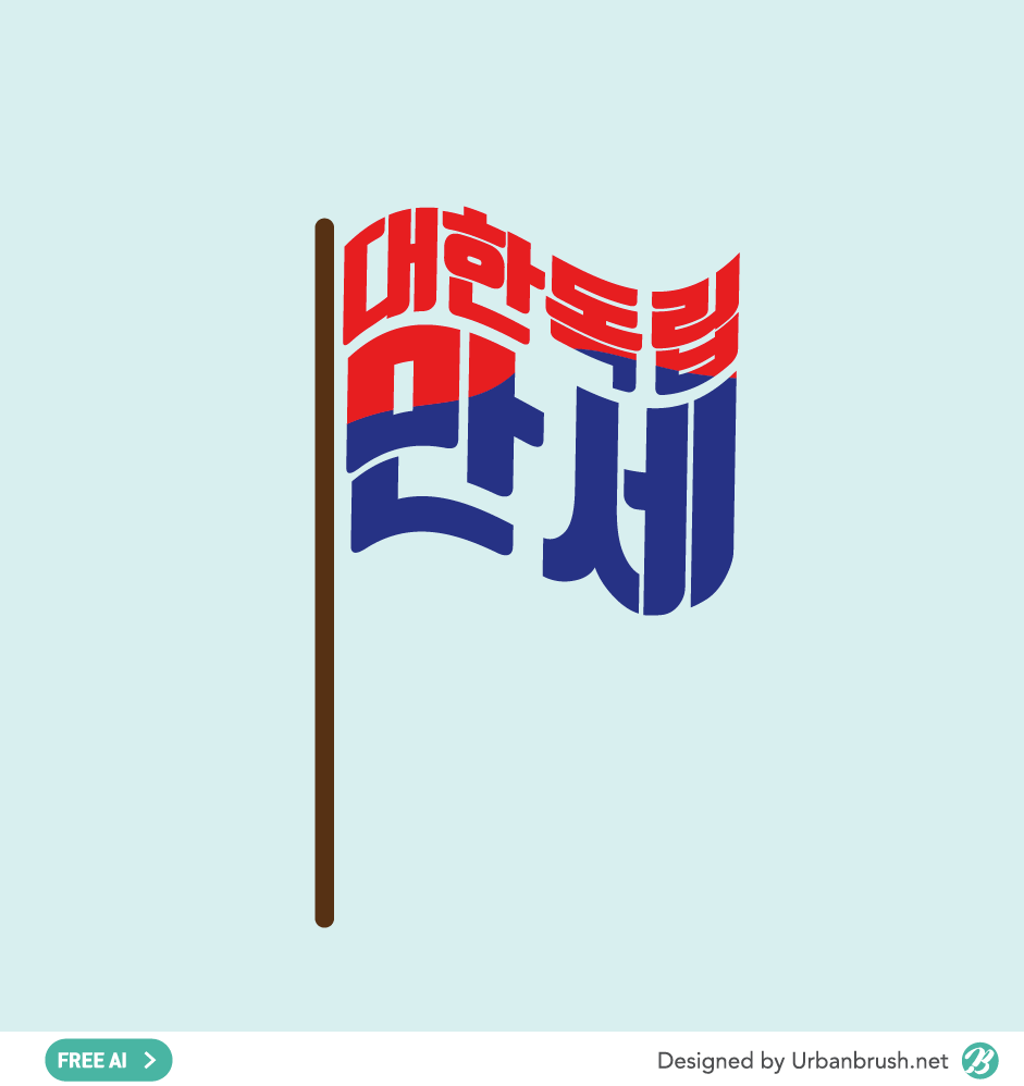 Hi. Urban Brush’s Master Creator Tommy. The image below is a sample of ai file illustrations for independence and typing. It is typography made in the form of Taegeukgi which is Korean flag. It is a typography illustrative image that adds fluttering feeling like a flag along with a taekwondo pattern. It is an illustrative image that can be used in categories related to Samil Newspaper, Samil Movement, Liberation Movement Liberation Day, and Independence Movement. Download Independent Tapeography illustration vector file for independence and use it in categories related to independence movement.