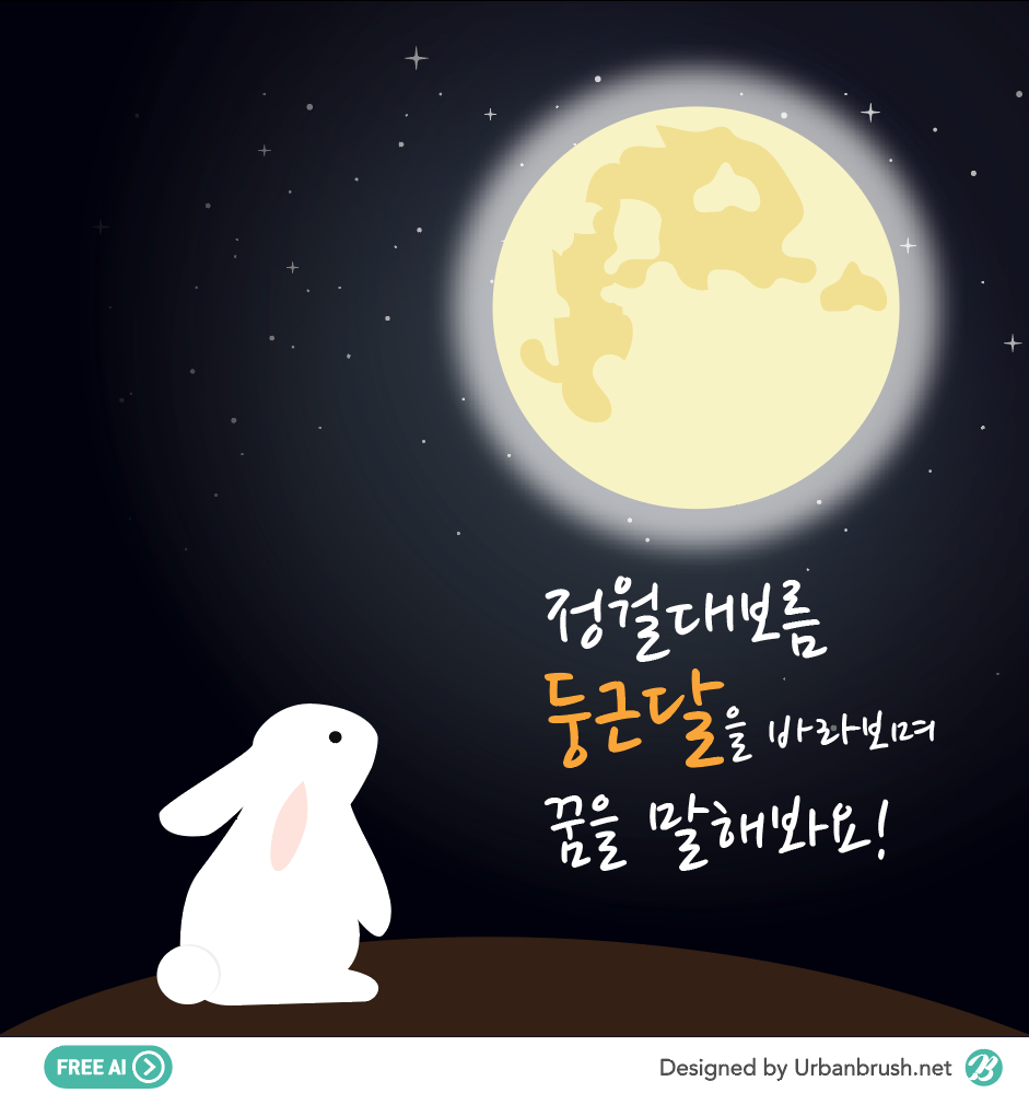 Hi. Urban Brush’s Master Creator Tommy. The image below is a sample of ai file for the New Year’s Eve. It is an illustration image depicting a scene of a wish for a New Year’s Eve. The large super moon is depicted in the starry night sky, and the rabbits are framed together. I described the rabbit I wanted to go to the moon to match the composition of the original fairy tale that the rabbit lives on the moon. In the center, I have included the phrase “Looking at the Round Moon and telling the dream”. Download the New Year’s Eve illustration vector file and apply it to the design related to wish-making.