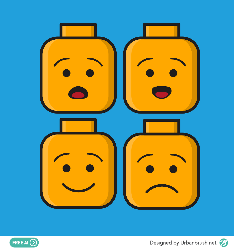 Hi. Urban Brush’s Master Creator Tommy. The image below is a sample of illustrations ai lego look. LEGO This is an illustration image expressing the face and facial expression. There are a total of four Lego facial expressions, depressed and laughing faces are composed of those with open mouth and those that are not. LEGO, toys, facial expressions, blocks, bricks and other related Donna category is suitable for use in the illustrations. LEGO Expression Illustration Download the vector file and apply it to the design related to the toy.