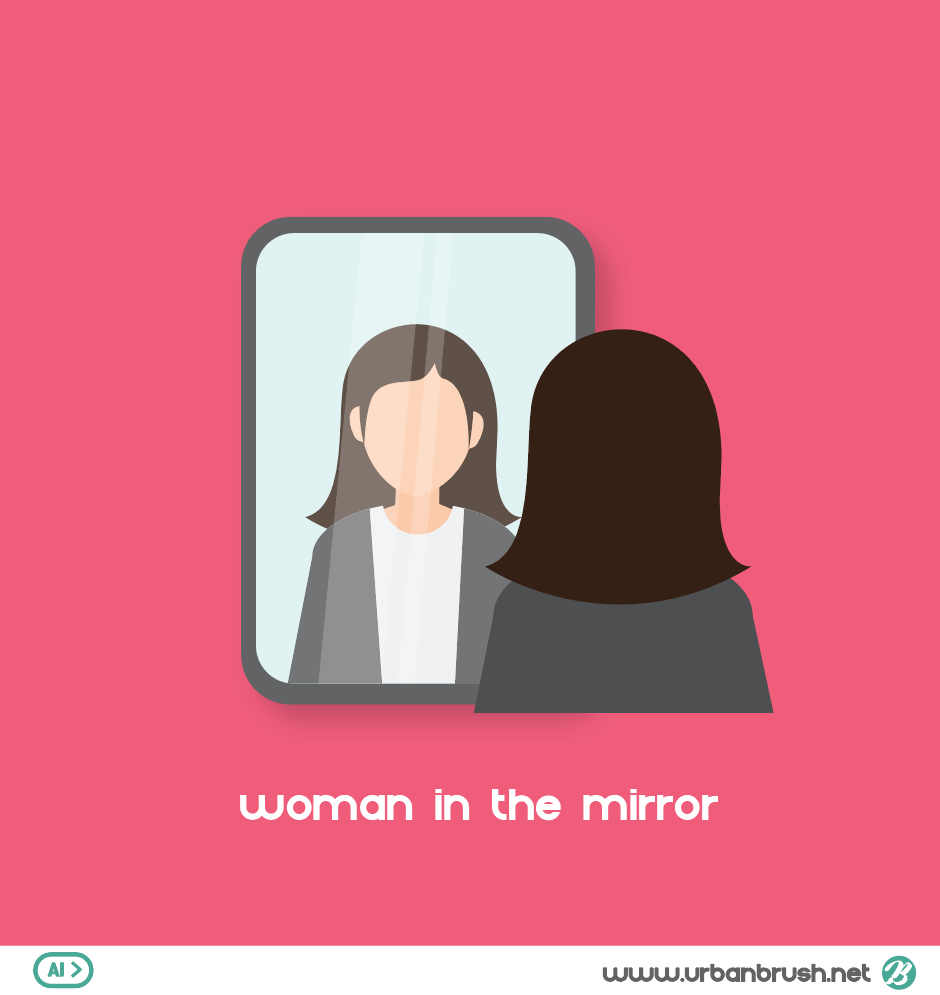 Hi. Urban Brush’s Master Creator Tommy. The image below is a sample of ai file with a mirror illustration. An illustrated image depicting a woman looking at a mirror. This is an illustration image that depicts a scene in which a woman is looking at her own image in a mirror. Mirror, self-reflection, self-portrait, self-portrait, makeup, and ready to go out of the category images are suitable for use in the image. Download Mirror Illustration vector file and apply it to your design related to self portrait.
