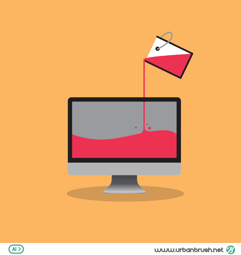Hi. Half Brush is Master Creator Tommy. The image below is a sample of monitor color illustrations ai file. It is an illustration image that expresses the scene where the paint of the paint canister is poured into the monitor. It is an illustration image created to remind the color of the monitor or computer by expressing the scene where the paint of the bucket enters the monitor screen. This is an illustrative image suitable for use in categories related to color tables, monitor colors, monitor brightness, buckets, Monitor color illustration Download the vector file and use it for color related design.