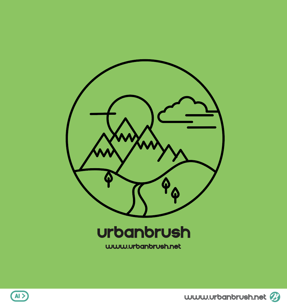 Hi. Urban Brush’s Master Creator Tommy. The image below is a sample of ai file with a natural logo illustration. Illustration image depicting nature. Mountains, fields, roads, trees, sky, etc. are described together to give the impression of nature logo illustration image. It is an illustration image suitable for outdoor, mountaineering, trekking, walking, exploring, and travel related categories. Download natural logo illustration vector file and use it for logo production.