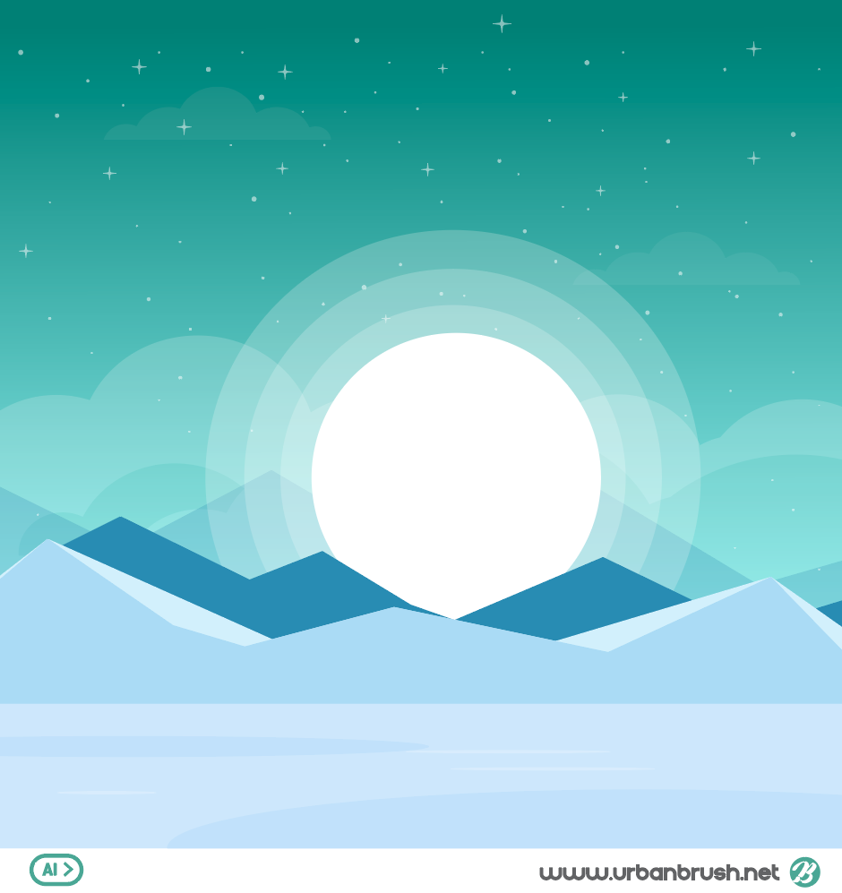Hi. Urban Brush’s Master Creator Tommy. The image below is a sample of ai file at night. It is an illustration image that expresses a night view of a snowy winter landscape. It is an illustration image that expresses the night where the moon is shining brightly around the mountains and the stars are shining. Night view, night sky, moonlight, winter, starlight, starry night, night and is related to the image category is suitable for use in the category. Download night view vector file and use it for design related to the night sky.