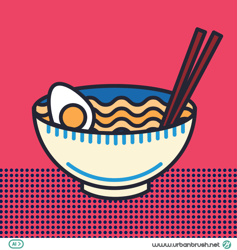 Urban Brush's Master Creator Tommy. Below is a sample noodle logo illustration ai free sample. The illustration image is a logo image of the scene with noodles lifting the chopsticks. It is an illustration image depicting a bowl of noodles with chopsticks. Noodles, mackerel noodles, ramen noodles and other categories are suitable for use in illustrations. Noodle logo illustration ai Download free illustration vector file and use it for design related to noodle.