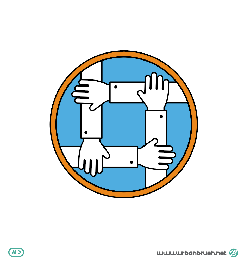 Hi. Urban Brush’s Master Creator Tommy. The image below is a sample co-ai file. It is an illustration image depicting a figure holding four hands around each other. I have expressed my hand crossing each other when playing a riding game. This is an illustration image suitable for use in categories related to collaboration, collaboration, collaboration, Download cooperative illustration vector file and use it for design related to collaboration.