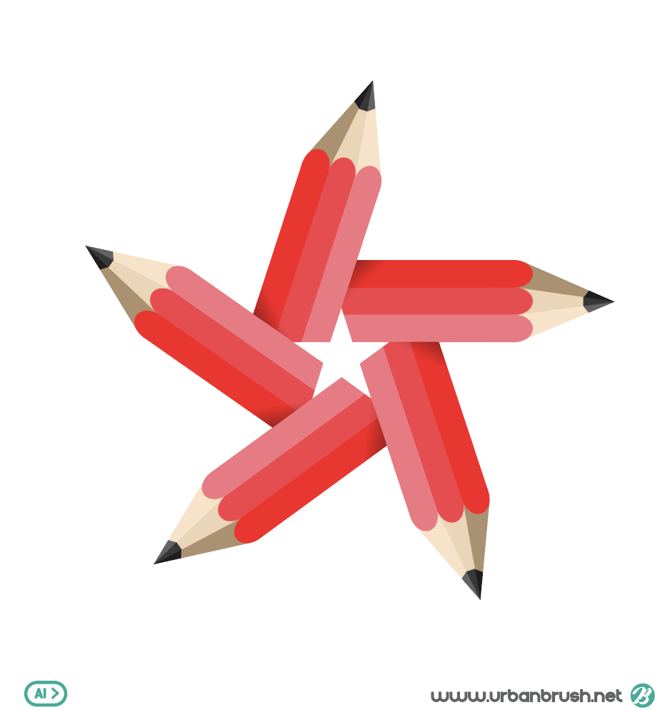 Hi. Urban Brush’s Master Creator Tommy. The image below is a pencil star illustration ai file sample. It is an illustration image that made a star shape by crossing five pencils. It is an illustration image that expresses the center margin with a pencil. It is an illustrative image suitable for learning, study, painting, art, drawing, sketching, and other related categories. Download pencil star illustration vector file and use it for design related to star.