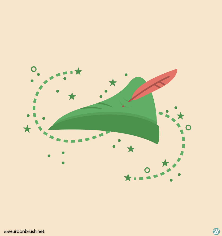 Hi. Urban Brush’s Master Creator Tommy. The image below is a sample Peter Pan hat illustration ai free. Illustrated image of a typical Peter Pan hat with a magical effect. It is an illustration image depicting the glittering magic effect around the petapen hat with the feather. Fairy tale, magic, Peter Pan, Neverland, children and other categories are suitable for use in illustrations. Peter Pan Hat Illustrations ai Free Illustrations Download the vector file and use it for magic-related designs.