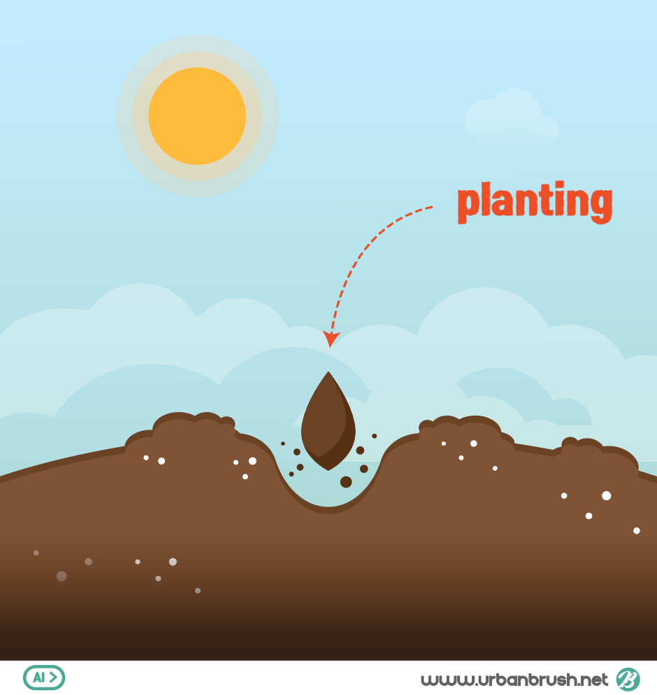 Hi. Urban Brush’s Master Creator Tommy. The image below is a sample of plant illustrations ai file. It is an illustration image expressing the figure of digging the ground and planting the seed in it. It is an illustration image depicting the digging of the earth’s soil and the seeding of the seed in it. The background is a clear sky, sun, clouds are represented. This image is suitable for use in categories related to sowing, planting, planting, and arboring. Planting Illustrations Download the vector file and apply it to the design related to planting.