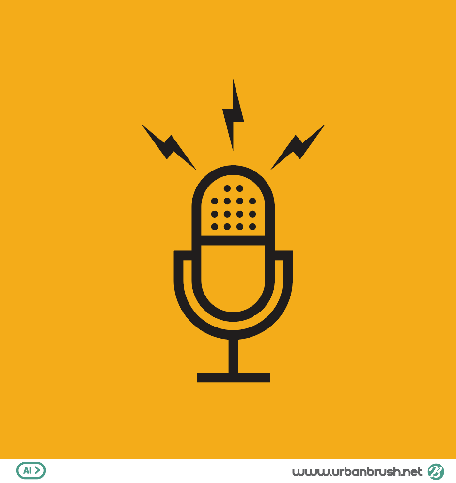 Hi. Urban Brush’s Master Creator Tommy. The image below is a sample podcast ai file. A podcast logo illustration image created using a microphone and a lightning mark. It is an icon illustration image produced by expressing a lightning sign indicating the transmission of radio and microphone means broadcasting. Podcasts, broadcasts, communications, single-media and related categories are suitable for illustrations. Download the Podcast Illustrations vector file and use it for broadcast related images.