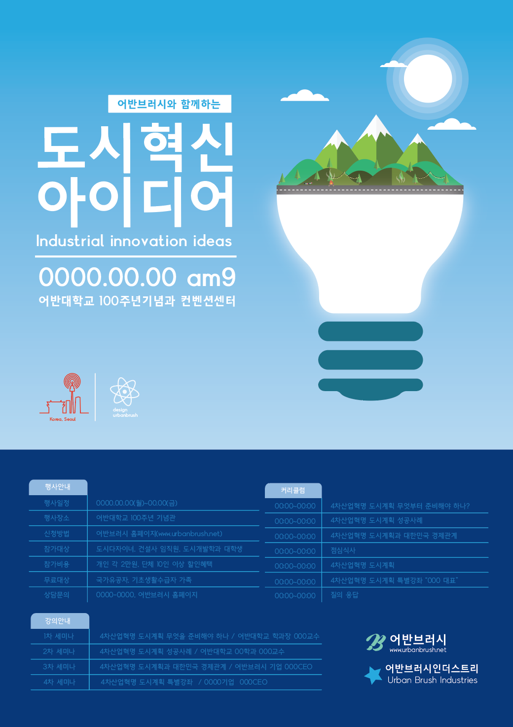 Hi. Urban Brush’s Master Creator Tommy. The image below is a free sample of poster design urban development. It is a poster illustration image composed of contents related to urban development ideas. The nature and the city are expressed on the bulb, and the contents are the seminar type lecture. Ideal image for categories related to city posters, development posters, idea posters, industrial posters, and more. Poster Design Urban Development Download illustration vector file and use it to make poster.
