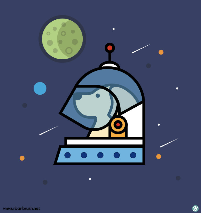 Hi. Urban Brush’s Master Creator Tommy. The image below is ai free sample of a puppy space travel illustration. It is an illustration image that depicts a puppy gazing at space wearing a space helmet. An illustration image depicting a dog wearing a suit in outer space. Space travel, animals, puppies, suits, helmets, space and is suitable for use in categories such as illustrations. Puppy Space Travel Illustrations ai Free Illustrations Download the vector files and apply them to animal related designs.
