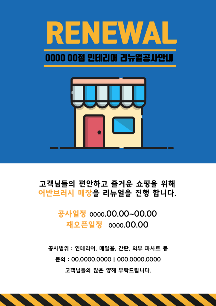 Hi. Urban Brush’s Master Creator Tommy. The image below is a sample of the Renewal Guide (A4, ai) file. It is a sample of the instructions which can be used for the renovation work of the offline store. It is made in A4 size. Stop signs, barricades, and labacone illustrations are included to announce the construction of the store. Renewal Instructions Download the illustration vector file and use it to make the announcement.