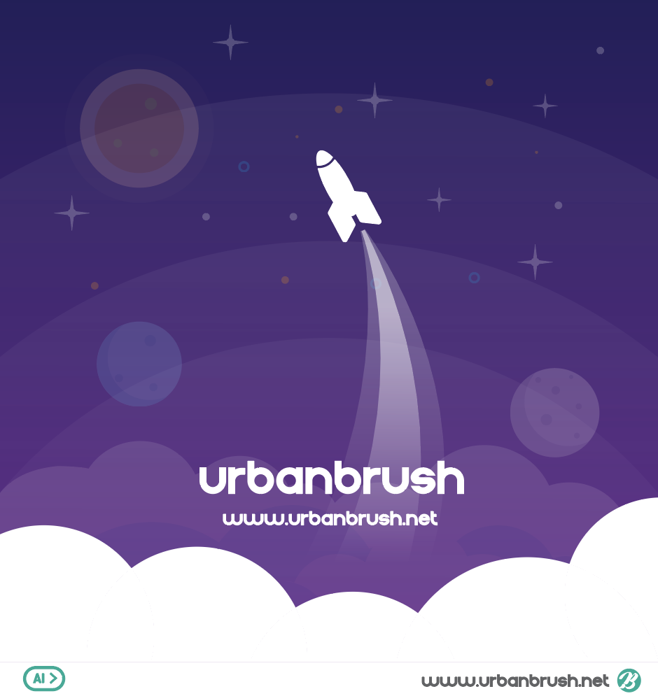 Hi. Urban Brush’s Master Creator Tommy. The image below is a sample rocket illustration ai file. It is an illustration image depicting the scene where the rocket is fired into space. Planets are represented in the universe represented by purple opaque colors, and the rocket fired into space is an illustration image expressing a lot of smoke. Rocket, launch, start, departure, space, science, planets, stars, astronomical and other categories. Download the rocket launch illustration vector file and apply it to the design related to the universe.
