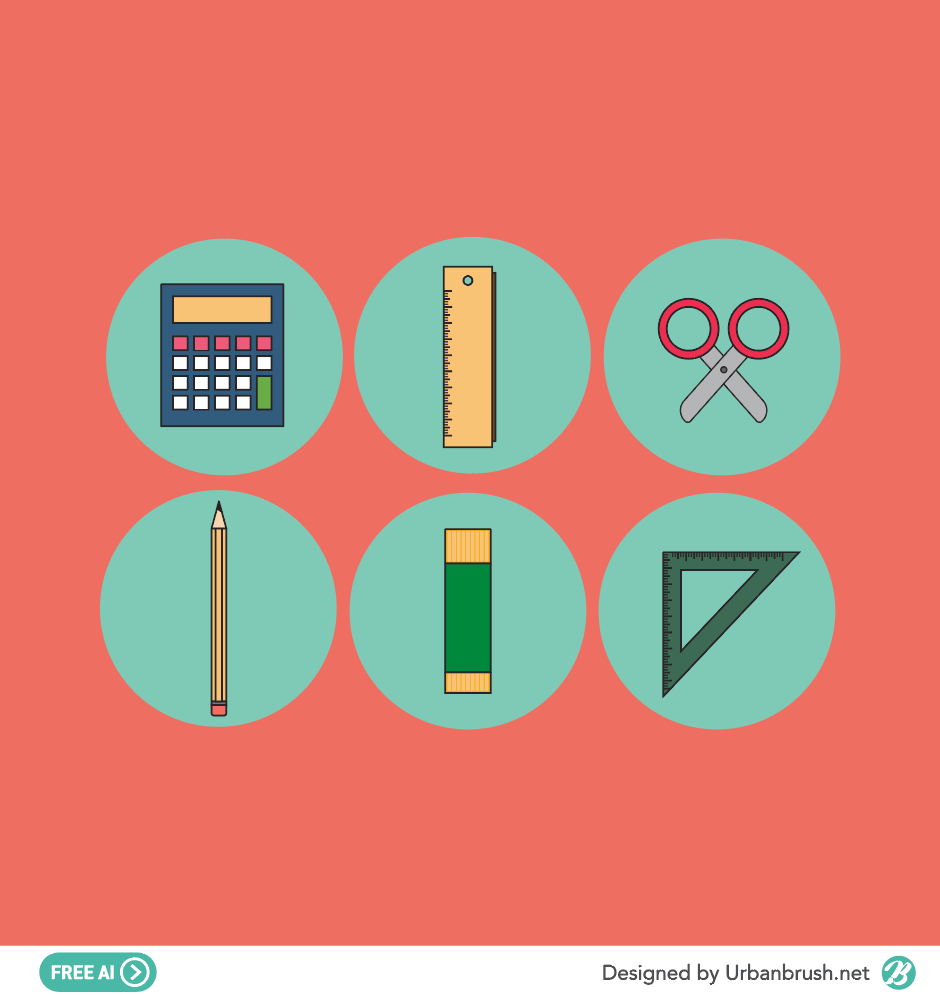 Hi. Urban Brush’s Master Creator Tommy. The image below is a sample of a school supplies icon ai file sample. It is an illustration image depicting various school supplies. There are six school supplies such as a calculator, ruler, scissors, pencil, grass, triangle, and can be used for design related to school life. School supplies, school, school life, pensies, stationery, stationery and other categories are suitable for use in illustrations. School Icon Icon Download Download the vector file and use it for school related design.