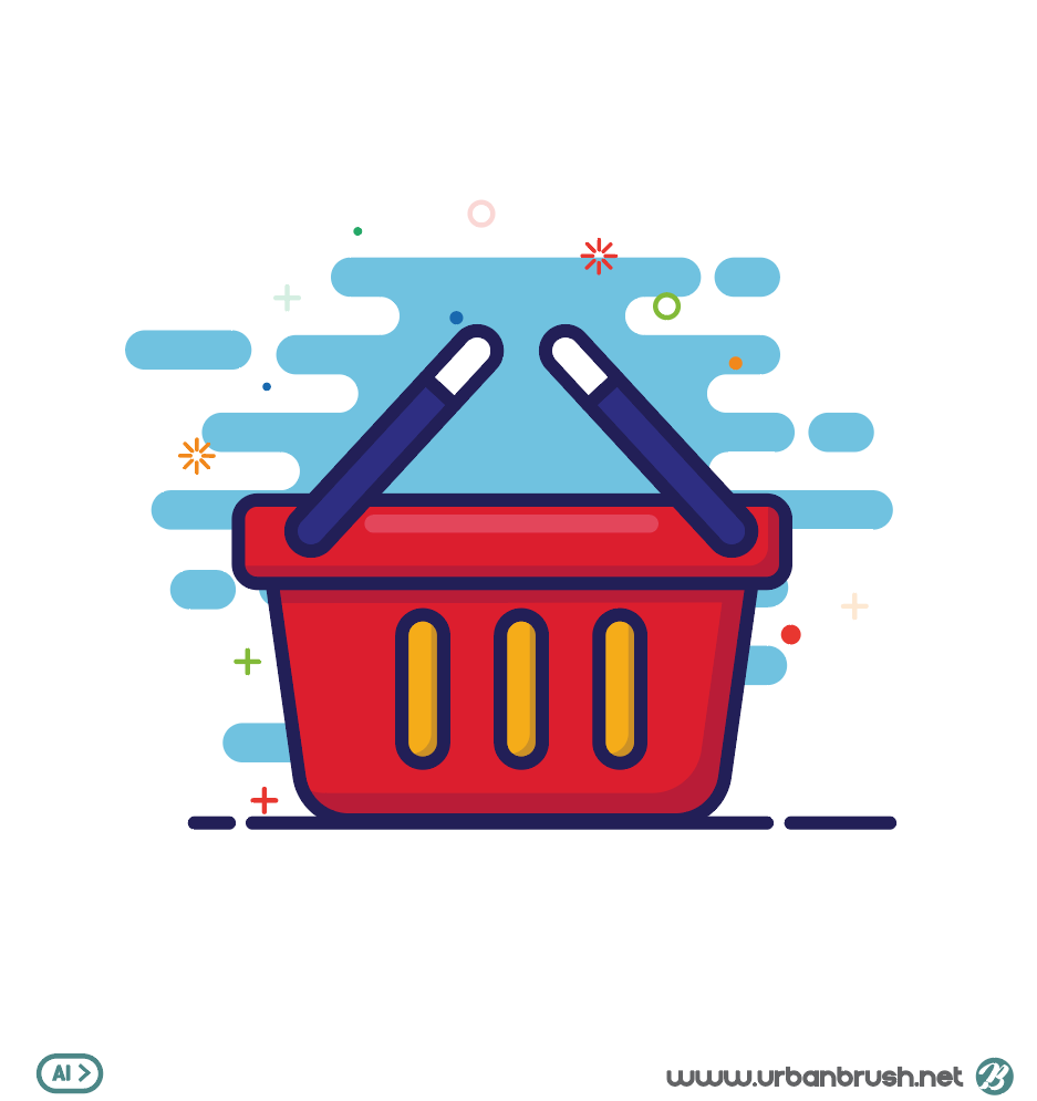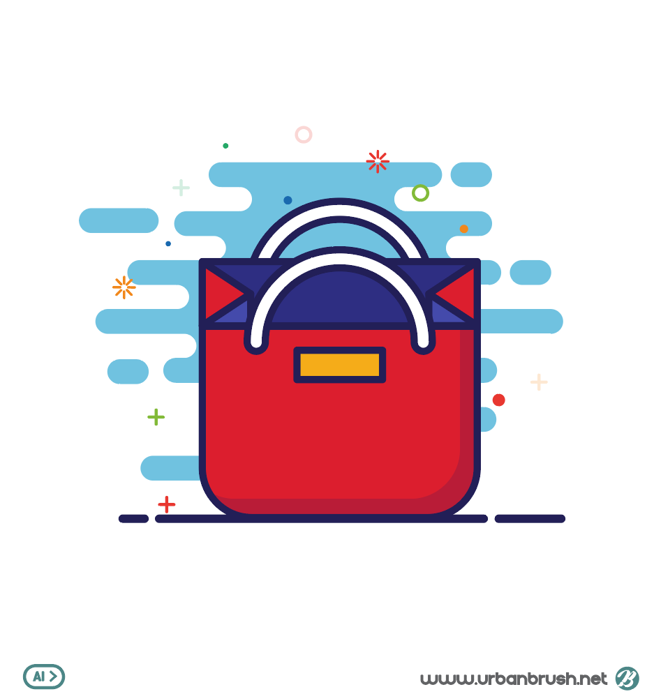 Hi. Urban Brush’s Master Creator Tommy. The image below is a sample shopping bag ai file. It is an illustration image expressing a shopping bag used to store goods or shop. The opening of the shopping bag is open, the inside is visible, and the handle and the like are represented together. It is an illustrative image suitable for shopping, buying, shopping, basket, and related categories. Download shopping bag illustration vector file and use it for design related to purchase.