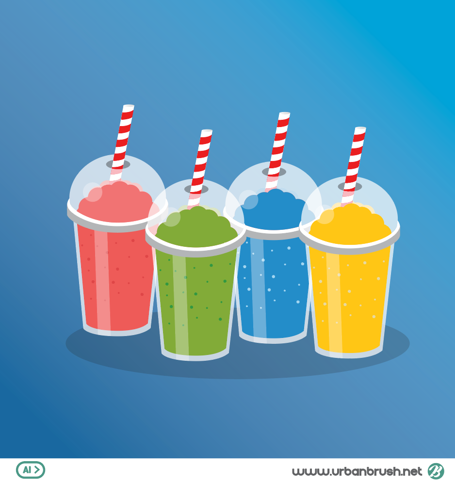 Hi. Urban Brush’s Master Creator Tommy. The image below is a slush illustrations ai file sample. It is an image depicting a slush made of ice grains of various colors to eat in summer. It expresses various flavors in various colors and expresses a straw inserted in a transparent plastic cup. This image is suitable for use in categories such as slush, summer drinks, beverages, juices, and smoothies. Download the slush illustrations vector file and use it for design related to summer drinks.