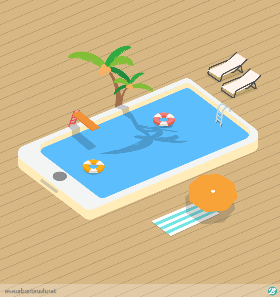 Hi. Urban Brush’s Master Creator Tommy. The image below is a sample of smartphone swimming pool illustrations ai file. It is an illustrative image that depicts a smartphone as a swimming pool and is composed of various water supplies. The smartphone pool has a diving area, ladder, palm trees, tubes, and sunbeds and beach umbrellas in the pool. Smartphone, swimming pool, summer, swimming, and water-related categories, such as images that are suitable for use in the image. Download the smartphone swimming pool illustration vector file and use it for design related to swimming.