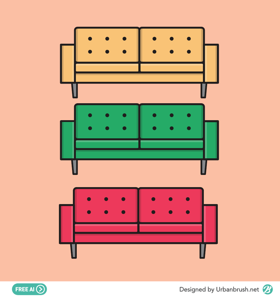 Hi. Urban Brush’s Master Creator Tommy. The image below is a sofa illustration ai file sample. It is an illustration image depicting a sofa with a flat shape that can be placed in a living room in general. It is composed of various scenes and is an illustration image that can be used for design related to interior. Sofa, chair, living room, living room, relaxation and other categories are useful to illustrate the image. Download the sofa illustration vector file and apply it to the design related to the chair.