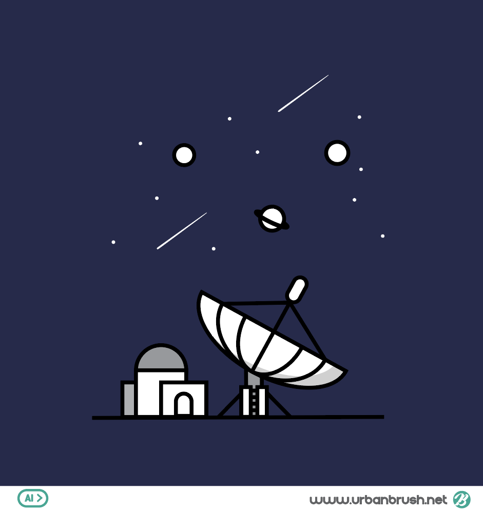 Hi. Urban Brush’s Master Creator Tommy. The image below is a sample of the ai file of the space observation illustration. It is an illustration image that expresses an observatory observing the universe. Large antennas and astronomical buildings facing the universe, stars, planets and meteors representing the universe are expressed together. This image is suitable for use in categories related to astronomical observations, space observations, space exploration, and constellations. Space Observation Download the illustration vector file and use it for design related to the celestial body.