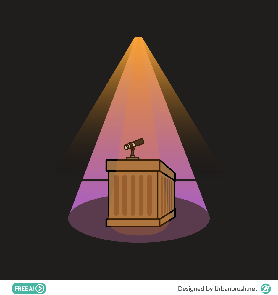 Hi. Urban Brush’s Master Creator Tommy. The image below is a sample of ai file with a speech stage illustration. It is an illustration image expressing a speech stage with a spotlight. It is an illustration image depicting a microphone with a speech stand and a spotlight illuminating a speech stand in various colors. It is an illustrative image suitable for use in categories related to speech, sermon, election, lecture, lecturer, professor, pastor, and church. Download speech stage illustration vector file and use it for design related to the stage.