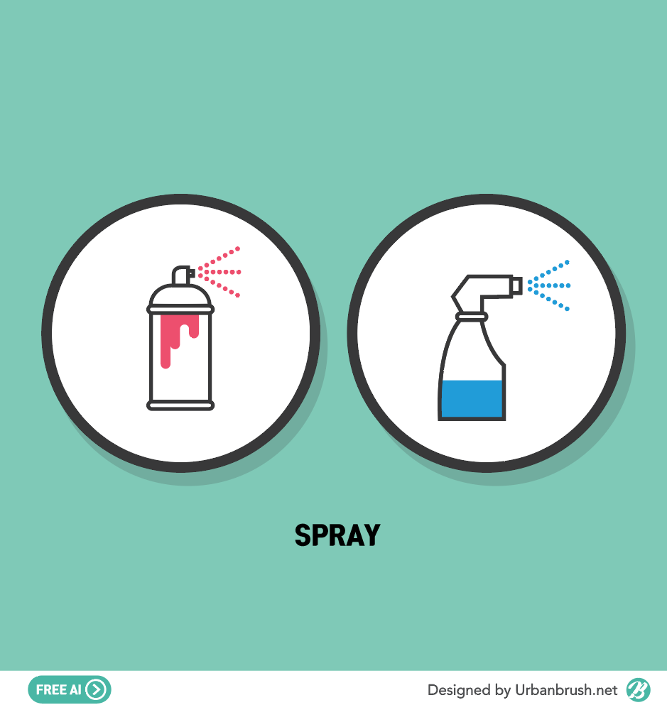 Hi. Urban Brush’s Master Creator Tommy. The image below is a sample spray ai file. An illustration image depicting a rocker spray or detergent spray. It is made in icon form, and you can express color by expressing color. This image is suitable for use in categories such as lacquer spray, canvas, glass cleaner, painting, painting, and more. Download the spray illustration vector file and apply it to the design related to paint.