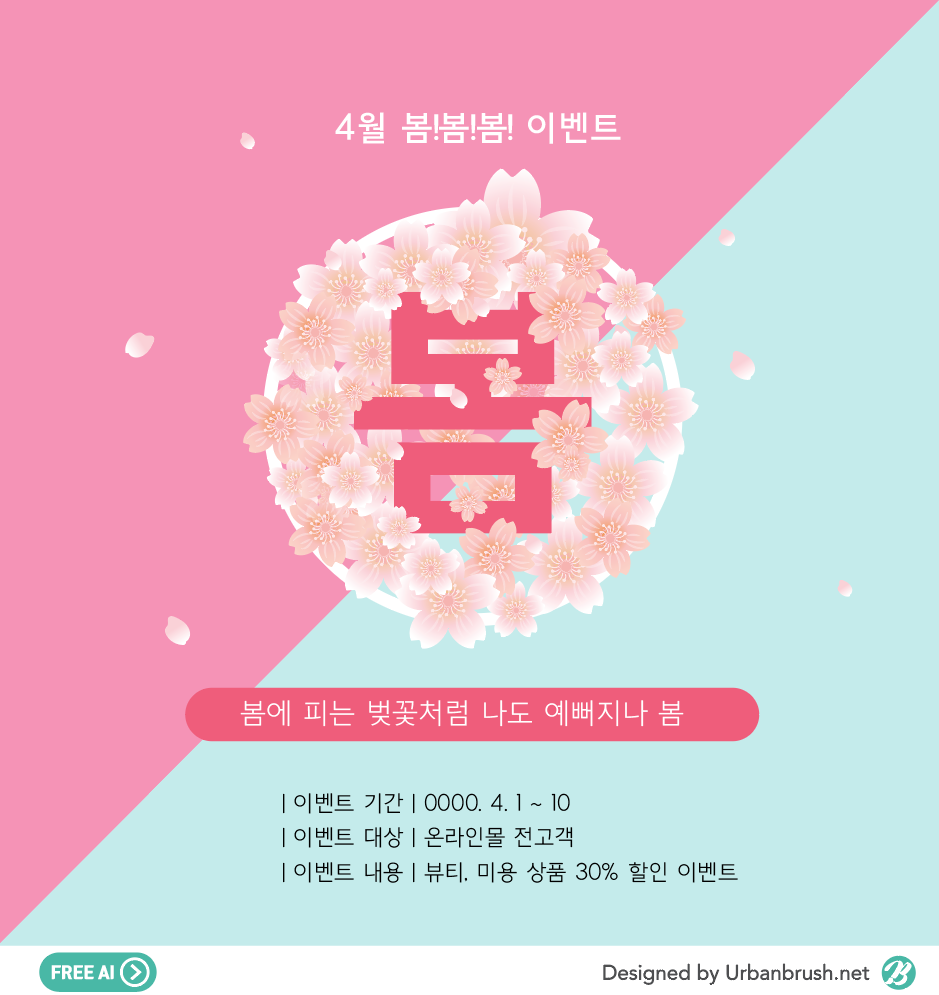 Hi. Urban Brush’s Master Creator Tommy. The image below is a sample of spring event banner illustrations ai file. It is the event banner illustration image which gave the spring feeling by depicting the Hangul “spring” in the place full of cherry blossoms. It is an event design that can match any topic related to spring or cherry blossoms. Spring event, cherry blossom events, beauty events, and other categories that are suitable for use in the illustrations. Download spring event banner illustration vector file and use it for design related to spring.