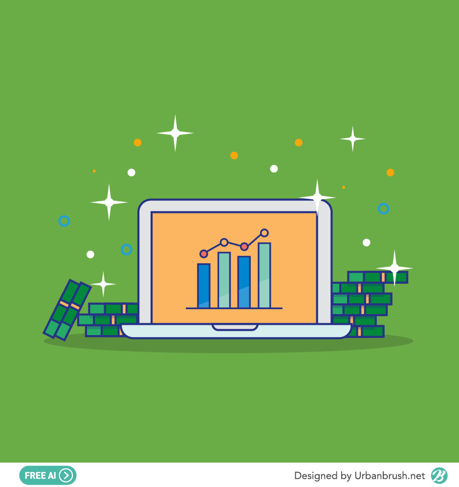 Hi. Urban Brush’s Master Creator Tommy. The image below is a stock illustration ai file sample. Illustration image depicting a stock graph looking at the computer. The graph is rising, and there are a lot of money and money around the notebook to express the success of the stock. The effect of the sparkling effect was further highlighted. Download the stock illustration vector file and apply it to your investment related design.