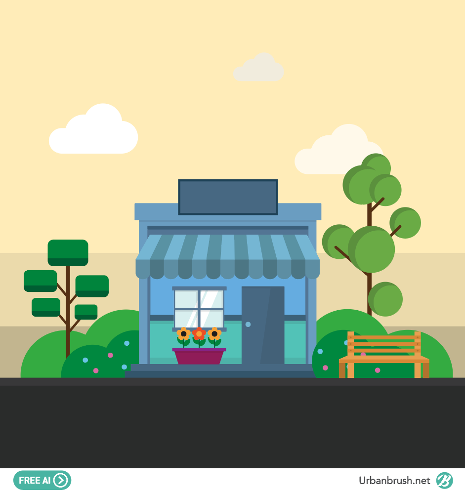 Hi. Urban Brush’s Master Creator Tommy. The image below is a sample of a shop illustrations ai file. Illustrated image depicting a small shop in the woods. It is an illustration image depicting a small shop with benches in front of flower pots in a dense park with forests and trees. Ideal for use in categories related to forests, trees, shops, shops, flower pots, chairs, and more. Download the store illustration vector file and use it for the shop related design.