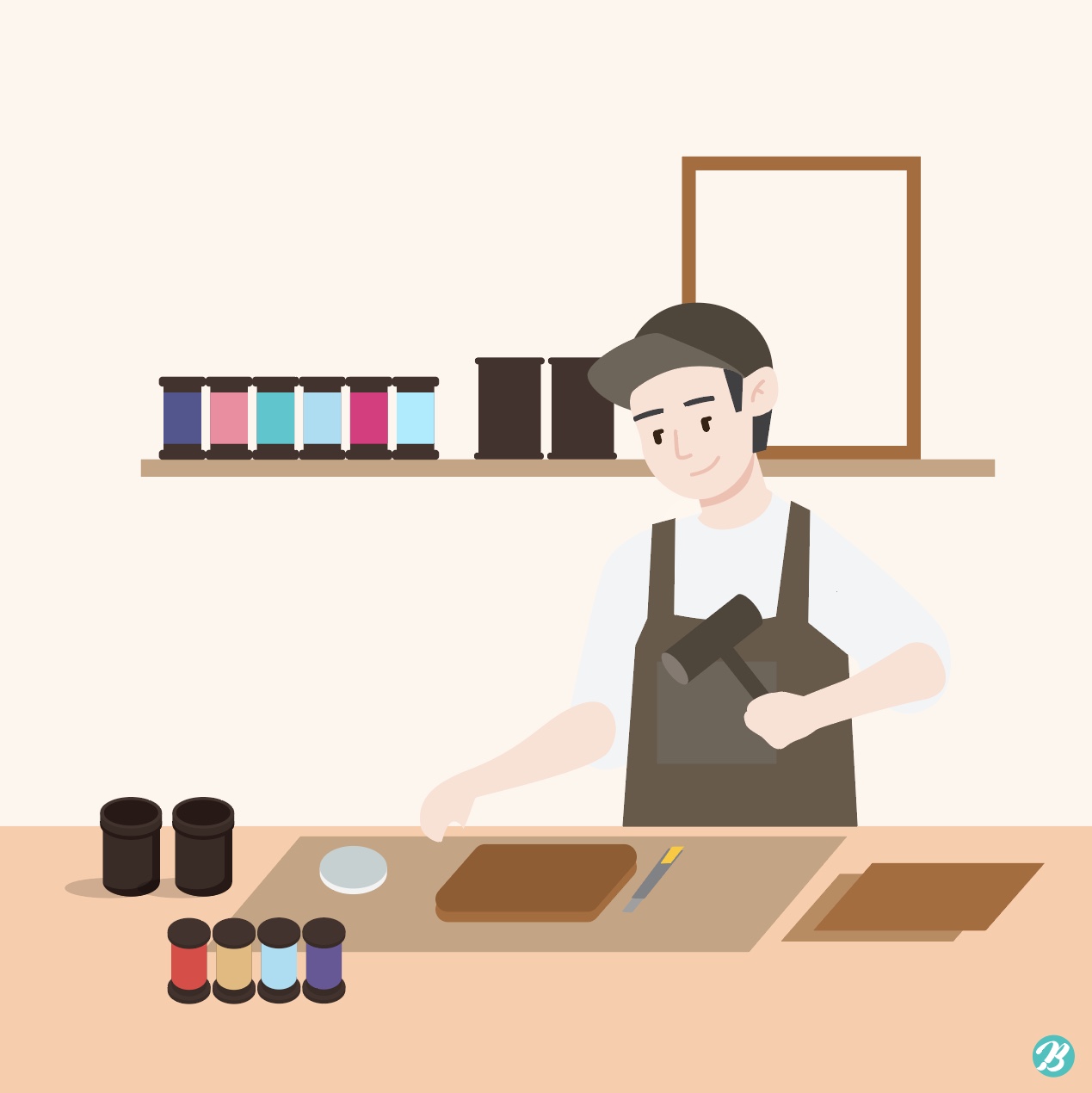 Hi, This is Tommy, Master Creator of Urban Brush. The image below is a sample studio illustration ai download. It is an illustration image that expresses a worker who is working in a studio. It is an illustration image depicting a landscape of a factory. It is an illustrative image suitable for use in categories related to workshops, work, leather workshops, making, woodworking, and workshops. Download the studio illustration ai download vector file and use it for design related to the studio. Included fonts are examples and are not included in the file. Please inquire with the font company for use.