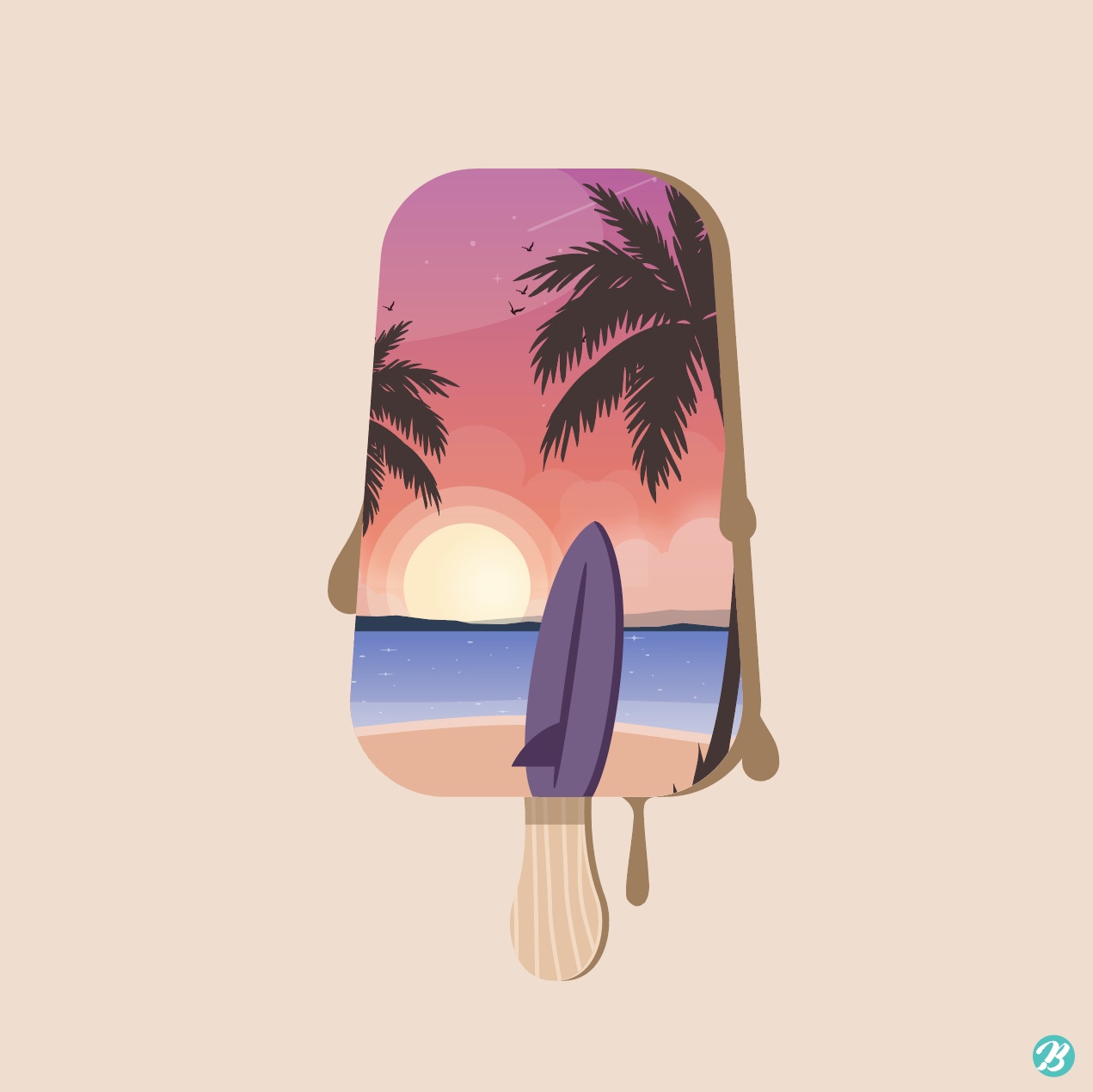 This is Tommy, Master Creator of Urban Brush. The image below is a sample summer beach ice cream illustration. It is an illustration image of ice cream in which the scenery of the beach is expressed. It is an illustration image depicting a beach sunset in ice cream. It is an illustrative image suitable for use in categories related to beach, sunset, beach, summer, vacation, surfing, surfer, palm tree, and tropical regions. Download the summer beach ice cream illustration vector file and use it for design related to summer travel. Included fonts are examples and are not included in the file. Please inquire with the font company for use.