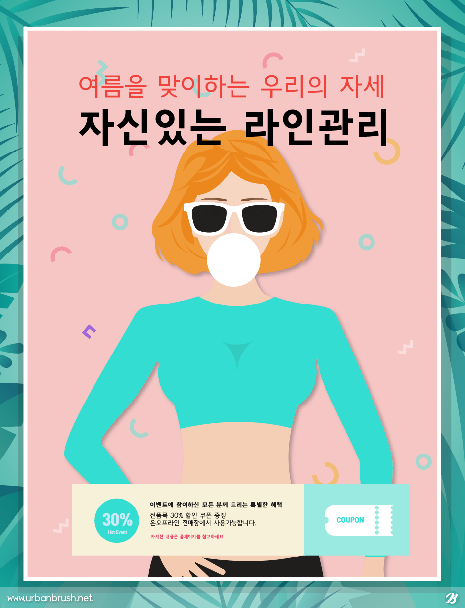 Hi. Urban Brush’s Master Creator Tommy. The image below is a sample of summer diet event banner illustrations ai file. I use the background of a palm tree to make a summer feeling, and an illustration image that expresses a woman wearing a sunglasses on a pink background and blowing a balloon. It contains contents that are related to the subject such as body care and diet. Summer diet, body care, fitness, training and other categories related to the image is a good illustration. Summer Diet Event Banner Illustration Download the vector file and use it for banner making.