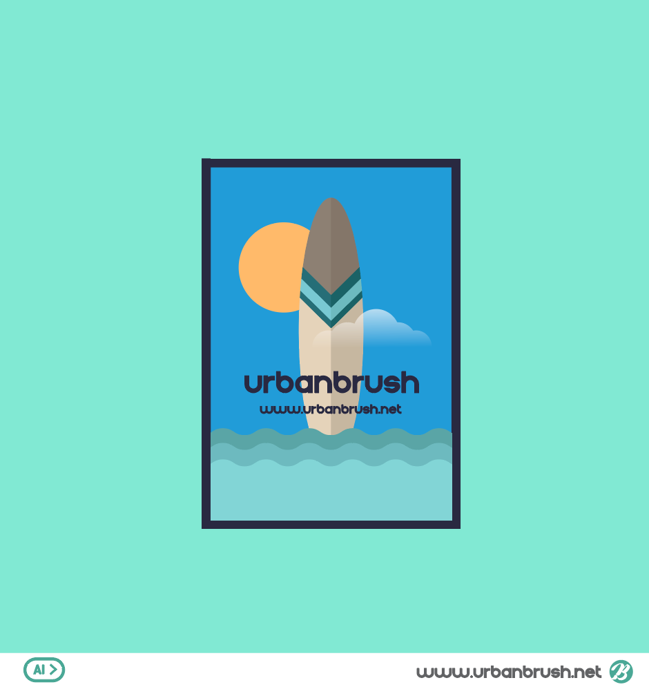Hi. Urban Brush’s Master Creator Tommy. The image below is a sample surfing ai file illustration. It is an illustration image depicting a scene where a surfboard is erected on the sea. In the background where the surfboard is standing on the sea where the wave of wave rises, it is the illustration image which expresses the scene with the sun and the cloud. Surfing, the sea, travel, sports, marine sports, summer and other categories, such as illustrations are suitable for use in the image. Download surfing logo vector file and use it for summer related design.