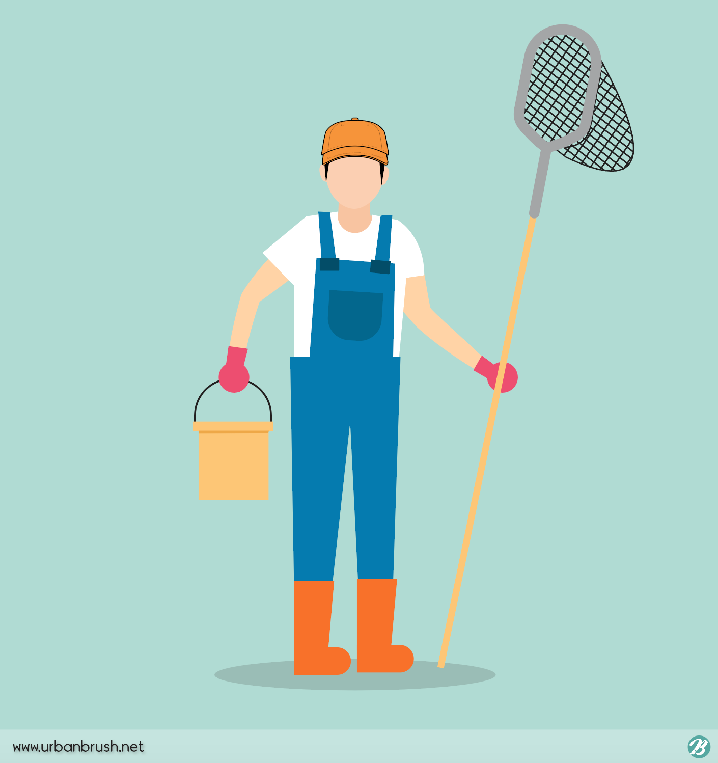 Hi. Urban Brush’s Master Creator Tommy. The image below is a sample of ai file illustration. It is an illustration image that expresses the cleaning part holding a cleaning tool wearing a cleaning outfit. It is an illustration image that can be reminiscent of an angler and a swimming pool cleaner because he holds a net and a bucket. Cleaners, anglers and related categories are suitable for use in illustrations. Download the sweeper illustration vector file and use it for cleaning related design.