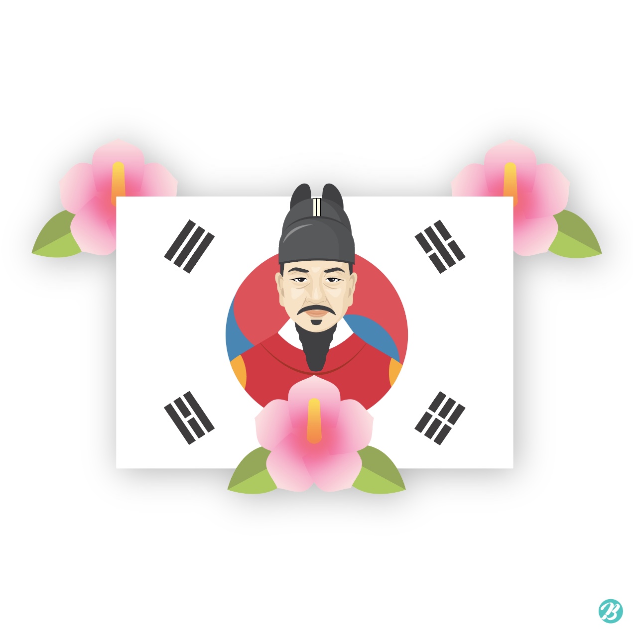 Hi, This is Tommy, Master Creator of Urban Brush. The image below is a sample of Taegeukgi King Sejong the Great. It is an illustration image expressing King Sejong the Great in Taegeukgi and Mugunghwa. It is an illustration image depicting the Taegeukgi with King Sejong the Great. This is an illustrative image suitable for use in categories related to King Sejong the Great, Hangeul Day, October, Joseon, Yongpo, Mugunghwa, and Korea. Download the Taegeukgi King Sejong the Great illustration vector file and use it for design related to Hangeul Day. Included fonts are examples and are not included in the file. Please inquire with the font company for use.