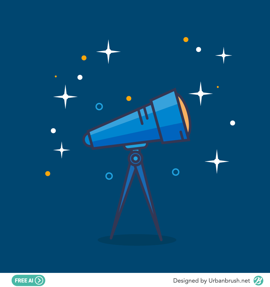 Hi. Urban Brush’s Master Creator Tommy. Below is a sample telescope illustration ai file. It is an illustration image depicting the astronomical telescope cutely. A telescope observing a star is an illustration image created by a baby – child image. Illustrated with glittering stars, it is an illustrative image suitable for use in categories related to dreams, universe, future, and stars. Download the telescope illustration vector file and apply it to the design related to the universe.