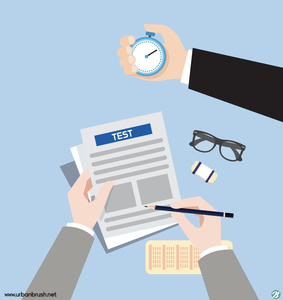 Hi. Urban Brush’s Master Creator Tommy. The image below is a test sample ai free sample. It is an illustration image that expresses a scene of a testimony. It is an illustration image depicting a student who takes a stopwatch and measures time, and a student who is having problems with an OMR card and a papers below it. This image is suitable for use in categories such as exam, test, SAT, final exam, and midterm exam. Test Illustrations ai Download free illustrations vector files and apply them to test related designs.