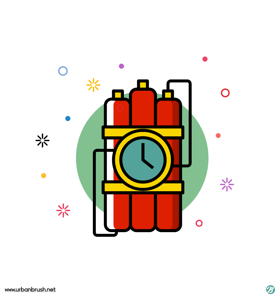 Hi. Urban Brush’s Master Creator Tommy. The image below is ai file sample of the time bomb illustration. It is an illustration image that depicts a time bomb with timers attached to explosives. It is an illustration image that shows the state that the lines are connected to the time bomb, and the incoming lamp, timer, and explosives are tied together. Bombs, explosives, timed bombs, dynamite, grenades and related categories are suitable for use in illustrations. Download time bomb illustration vector file and use it for design related to dynamite.