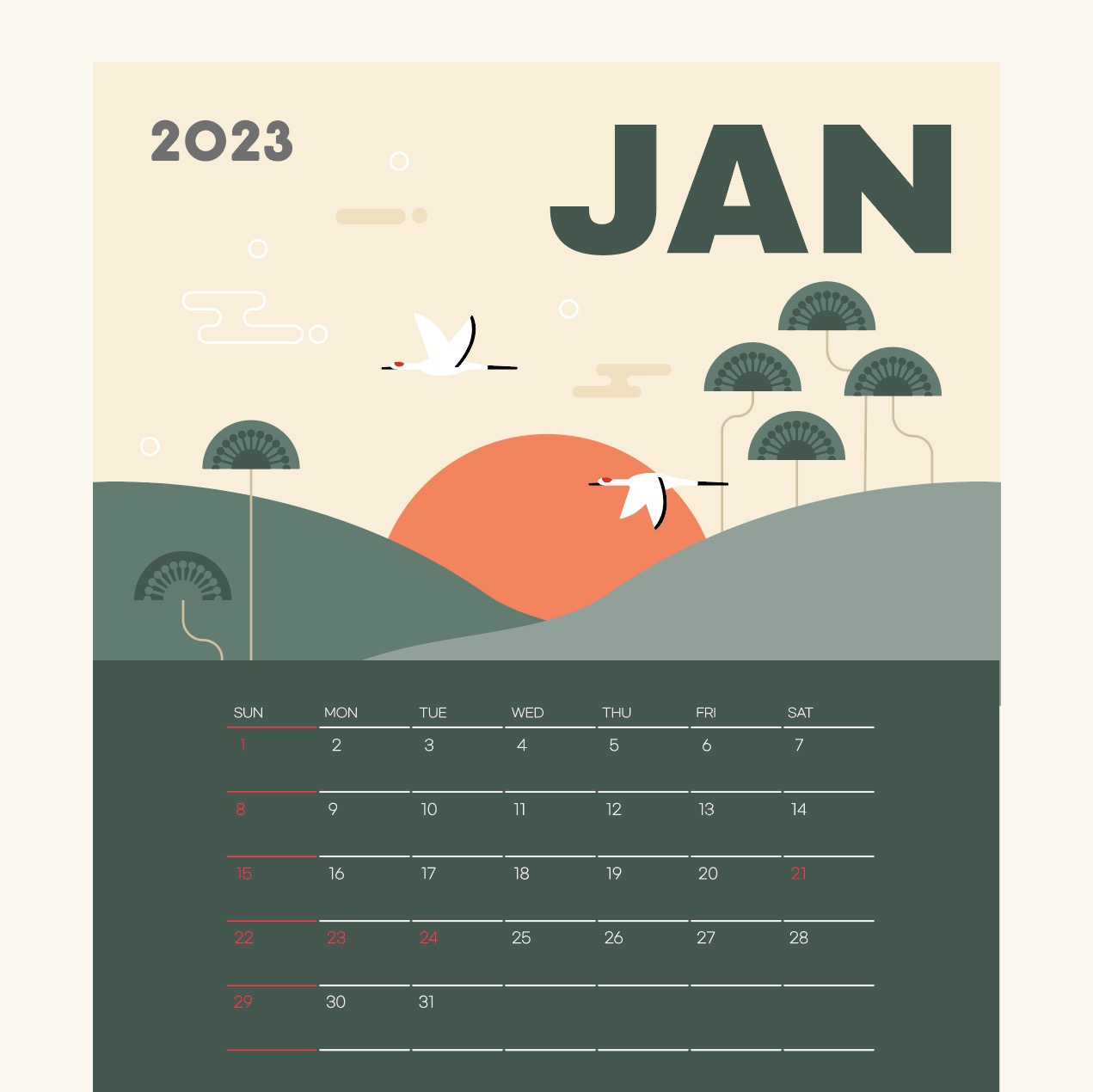 Hi, It is an urban brush. The image below is a sample of the traditional calendar illustration for January 2023. It is an illustration image expressing the calendar of the 2023 year. It is an illustration image depicting a January calendar with a traditional New Year’s feeling. Associated with January, calendar, new year, 2023, year of the cat. It is an illustrative image suitable for use in January, calendar, new year, 2023, and cat year categories. Download the traditional calendar illustration vector file for January 2023 and use it for design related to the 2023 calendar. If you need a graphic design request, search KakaoTalk “Urban Brush” and contact us. The fonts included are examples and are not included in the file. Please contact the font company for usage.