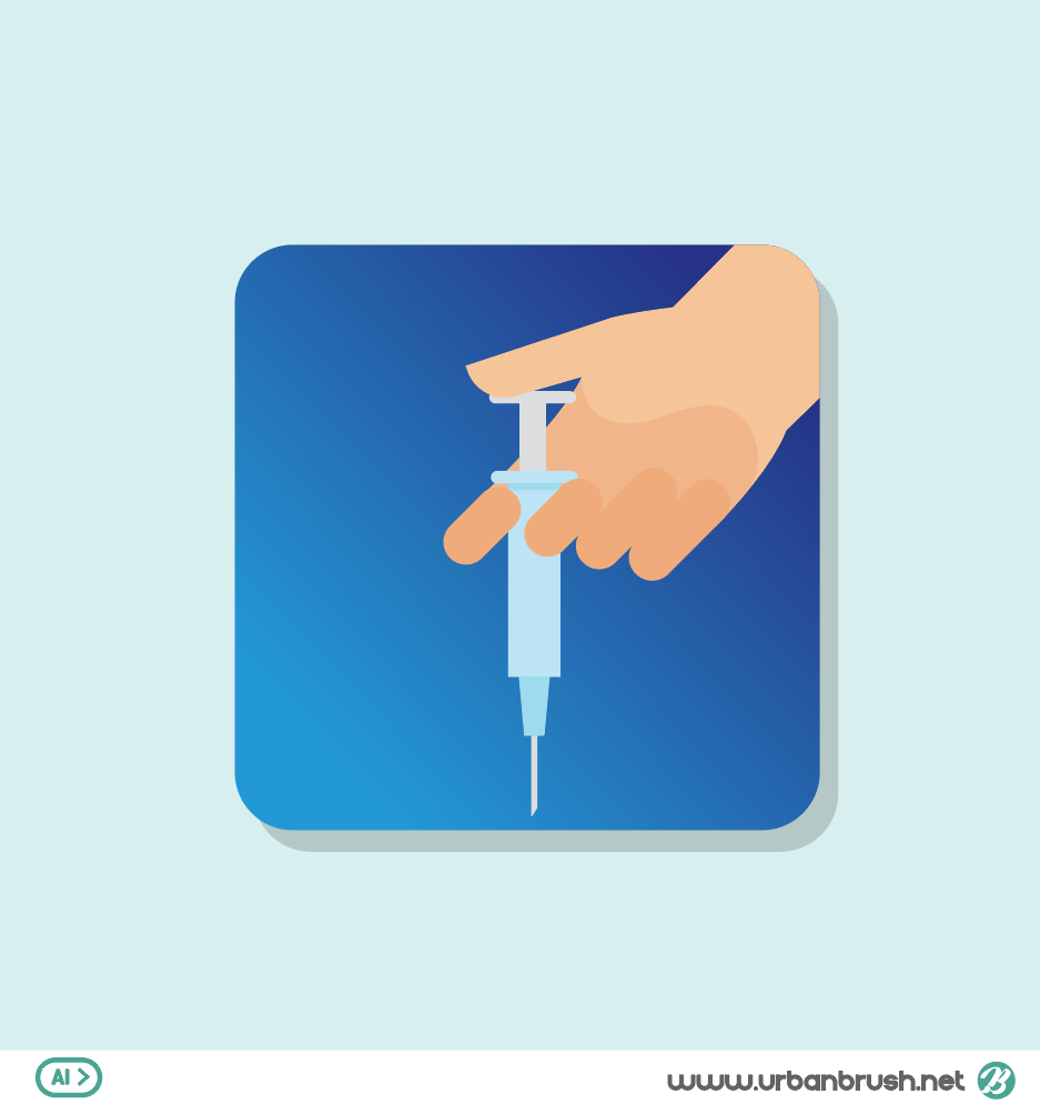Hi. Urban Brush’s Master Creator Tommy. The image below is a sample of vaccination illustrations ai file. It is an illustration image that expresses the scene holding the syringe and holding the injection. It is an illustration image that expresses the impression that the thumb is pushing the syringe with the finger and the thumb. This image is suitable for use in categories such as immunization, injection, drug, treatment, experiment, disinfection, antibody, etc. Download the Vaccination Illustration vector file and use it for design related to the syringe.